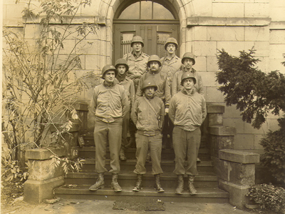G-5 Section V Corps. Front (l to r) Roberts, Col. Marrney, Lt. Col. Phaw.